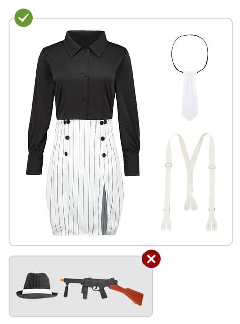 Apima: Suknelė, kaklaraištis ir petnešos